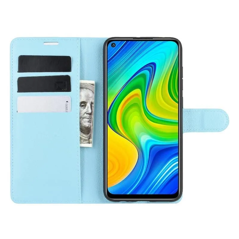 Litchi PU bőr pénztárca tok Xiaomi Redmi Note 9-hez - kék