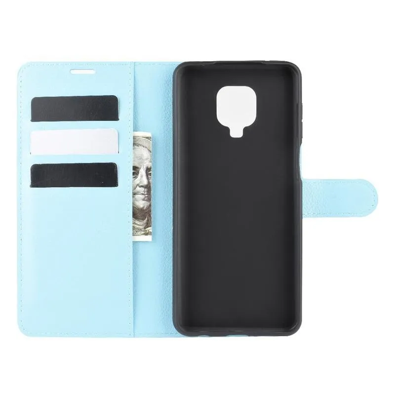 Litchi PU bőr pénztárca tok Xiaomi Redmi Note 9 Pro/Note 9S - kék