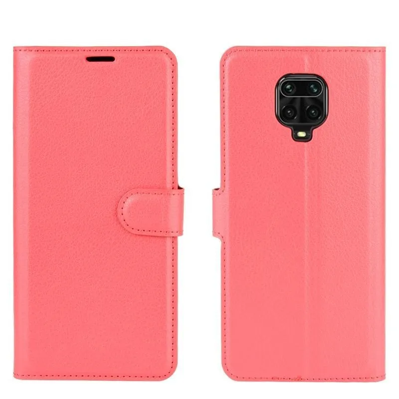 Litchi piros könyv tok Xiaomi Redmi Note 9 Pro/Note 9S számára