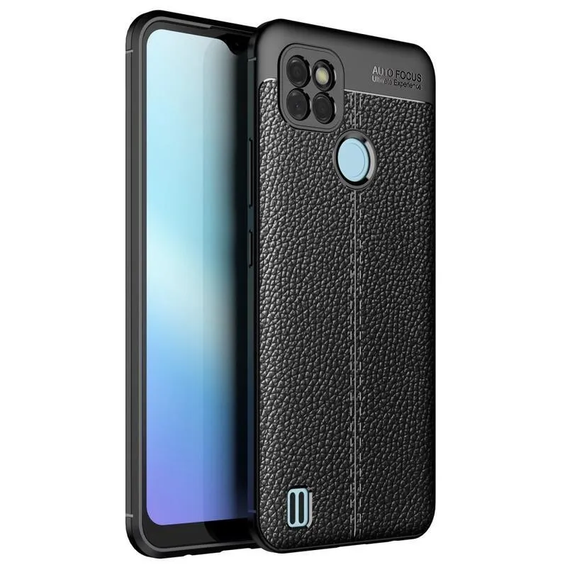 Fekete tartós zselés borítás Litchi a Realme C21Y/C25Y készülékhez