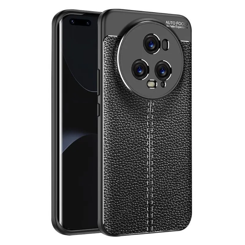 Fekete tartós zselés borítás Litchi a Honor Magic 5 Pro 5G számára