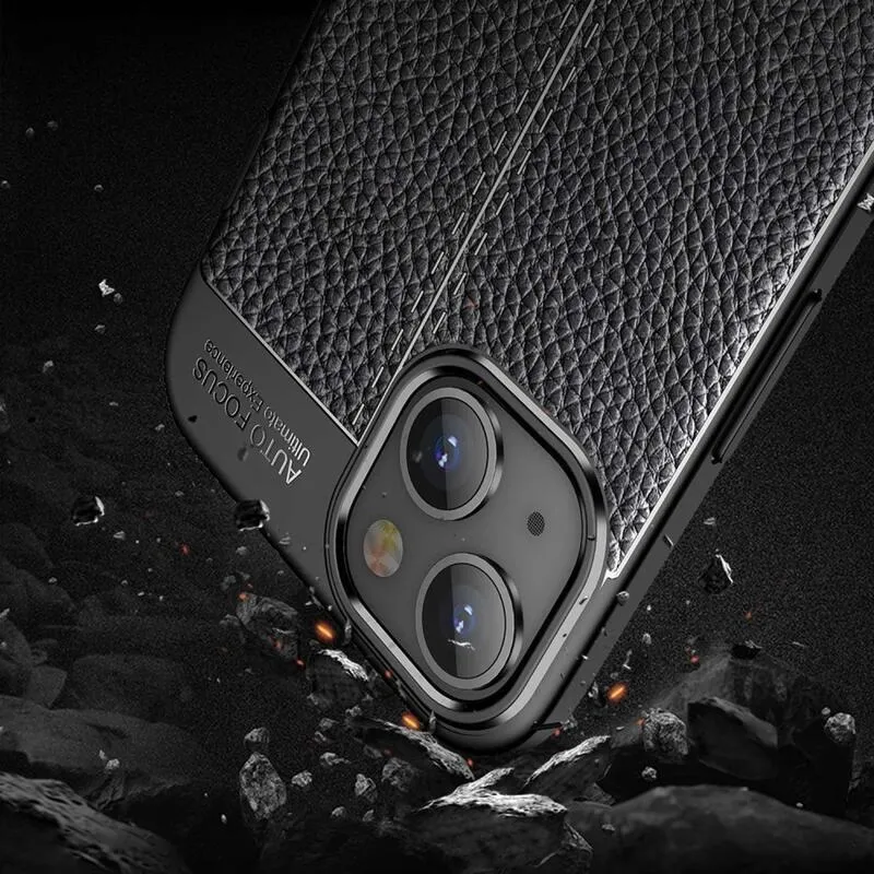 Fekete tartós zselés borítás Litchi iPhone 14 Plus készülékhez