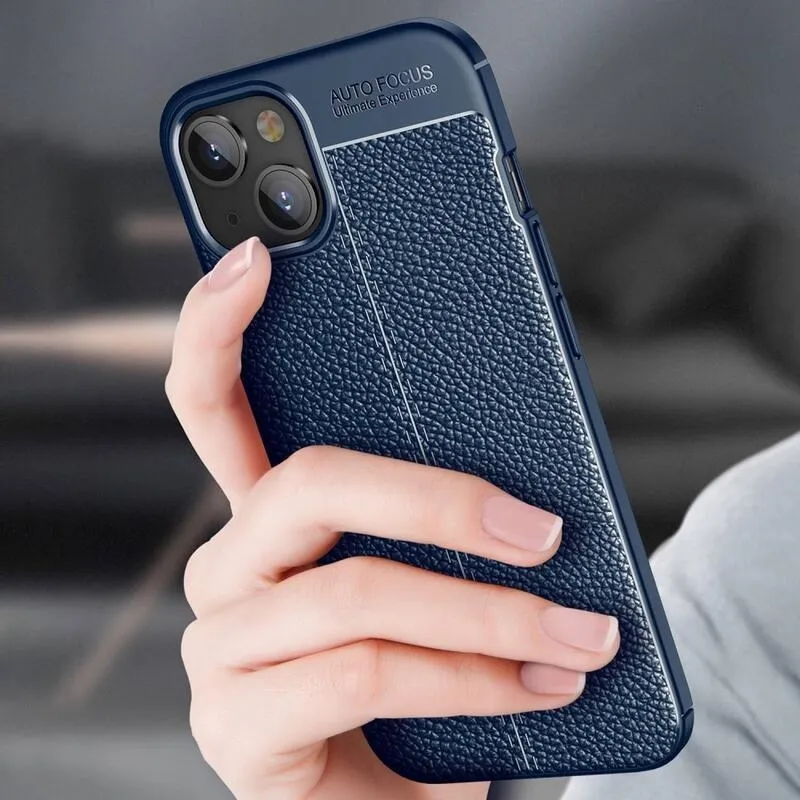 Kék tartós zselés borítás Litchi iPhone 14 Plus készülékhez