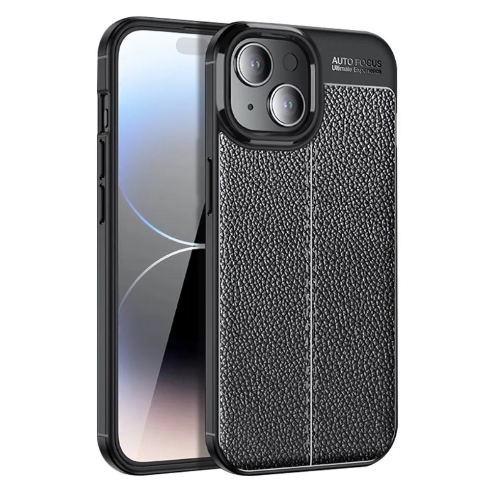 Fekete tartós zselés tok Litchi iPhone 15 Plus készülékhez