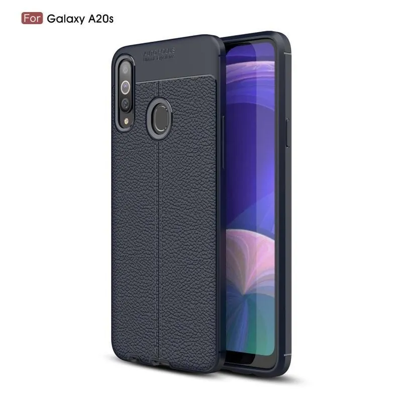 Kék tartós zselés borítás Litchi Samsung Galaxy A20s készülékhez