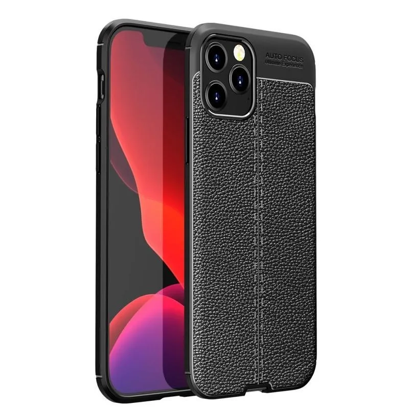 Litchi tartós zselés tok textúrával iPhone 12 Pro Max 6.7" készülékhez - fekete