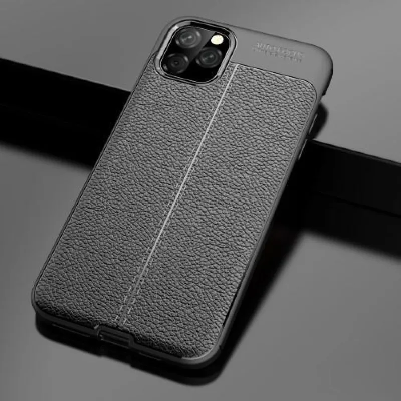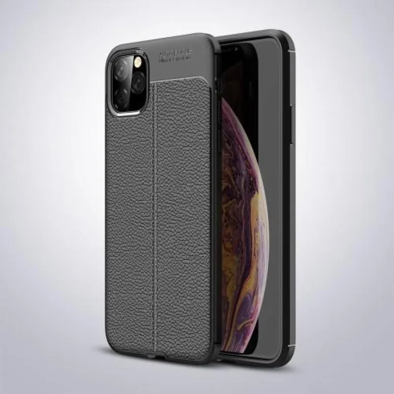 Litchi texturált zselés tok Apple iPhone 11 Pro Max 6.5 (2019) készülékhez - fekete