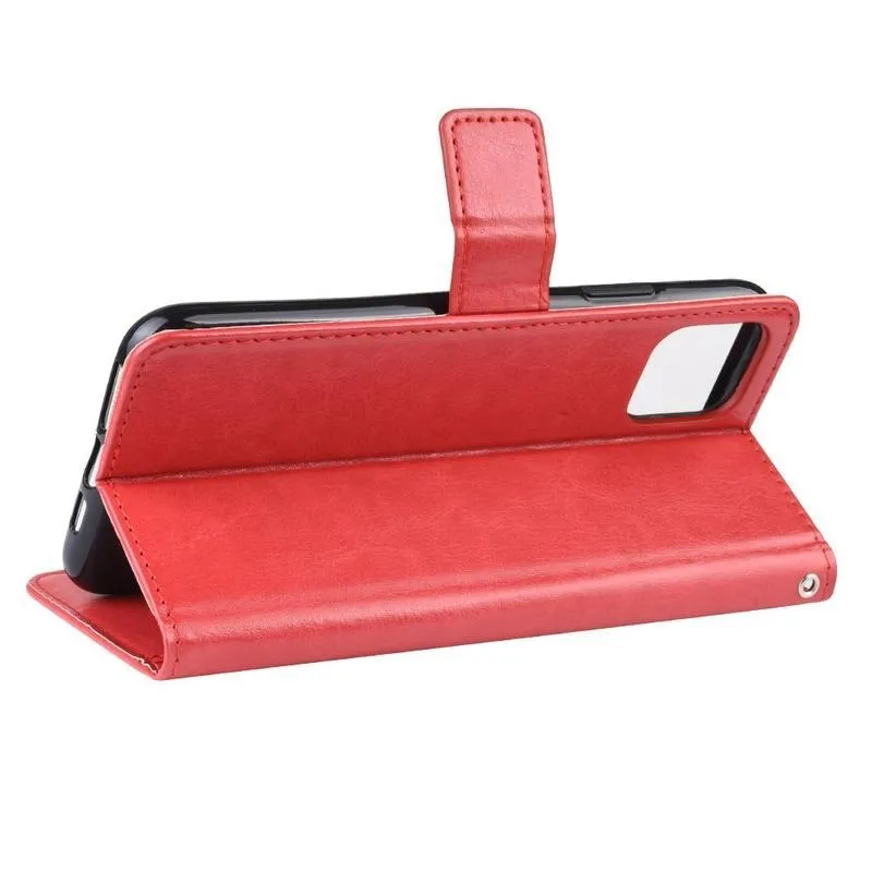 Ló PU bőr pénztárca tok iPhone 12 Pro Max 6,7" készülékhez - piros