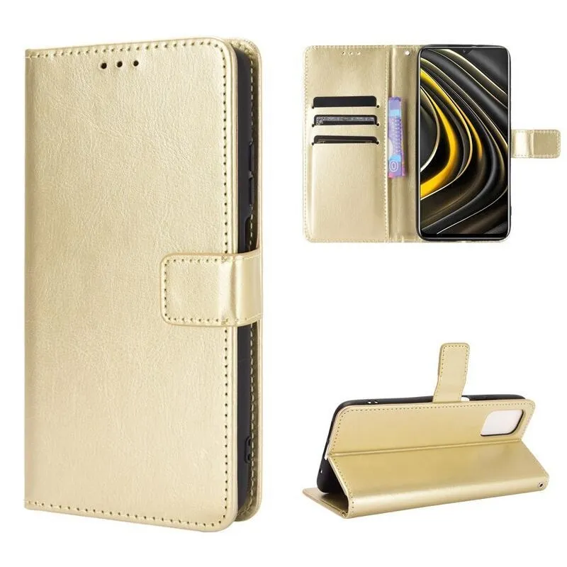 Ló PU bőr pénztárca tok Xiaomi Poco M3-hoz - arany színben