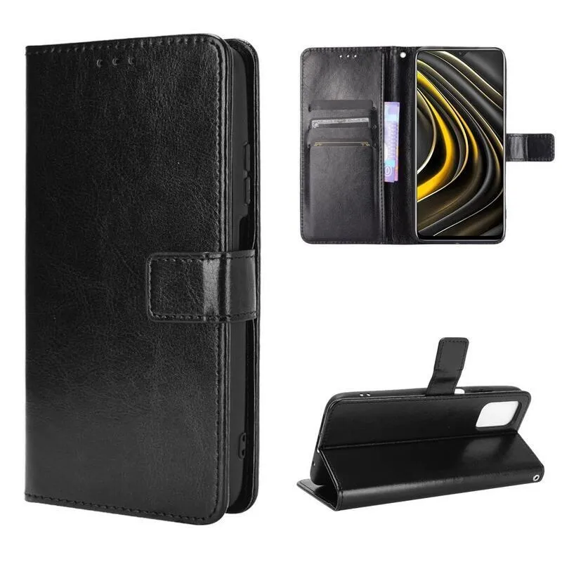 Ló PU bőr pénztárca tok Xiaomi Poco M3-hoz - fekete
