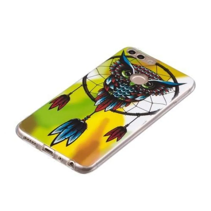 Védő zselés tok, ami világít a sötétben egy álomfogó motívummal és egy bagollyal a Huawei P Smart mobiltelefonon.