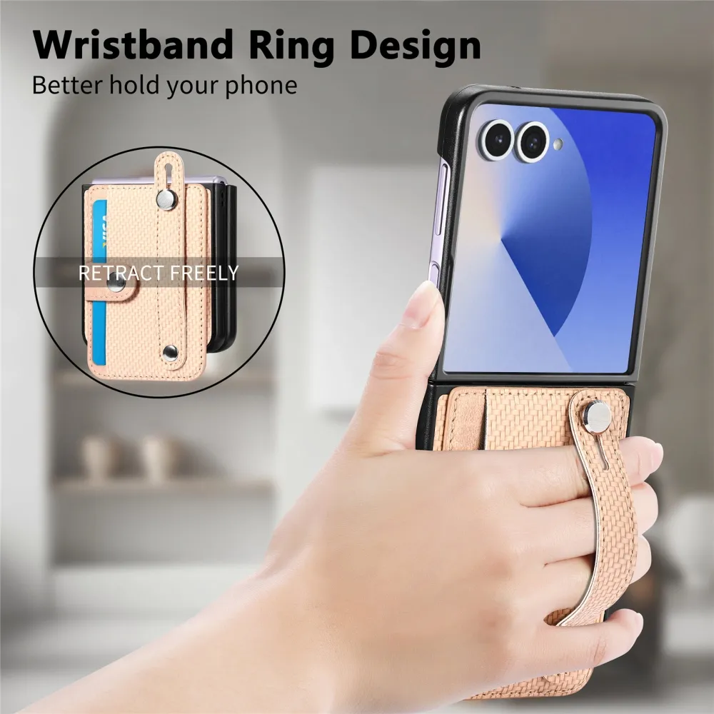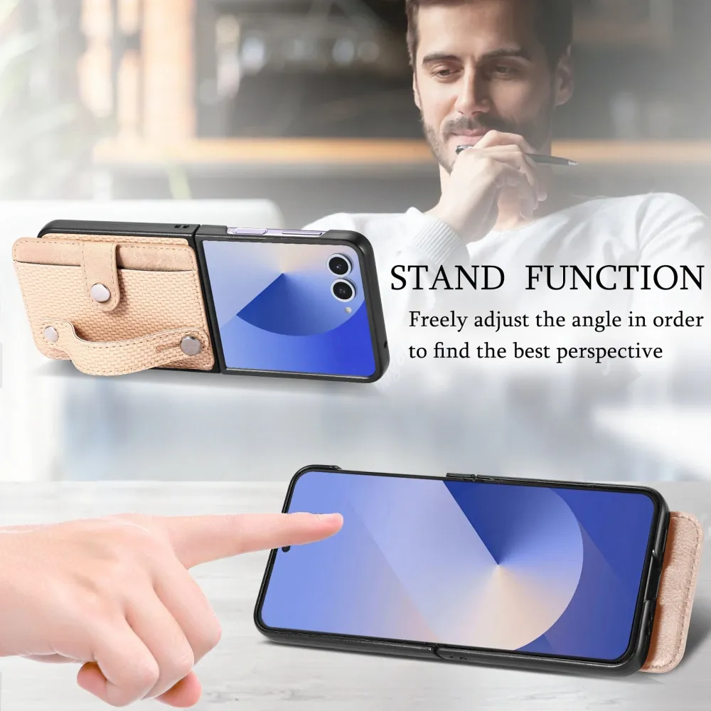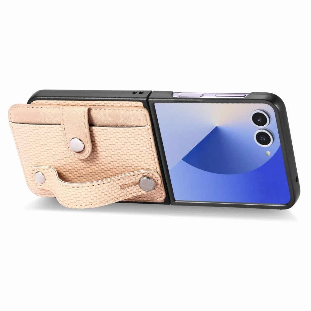 Khaki színű műanyag tok Wrisat műbőrrel a mobiltelefonon Samsung Galaxy Z Flip7 5G 5G