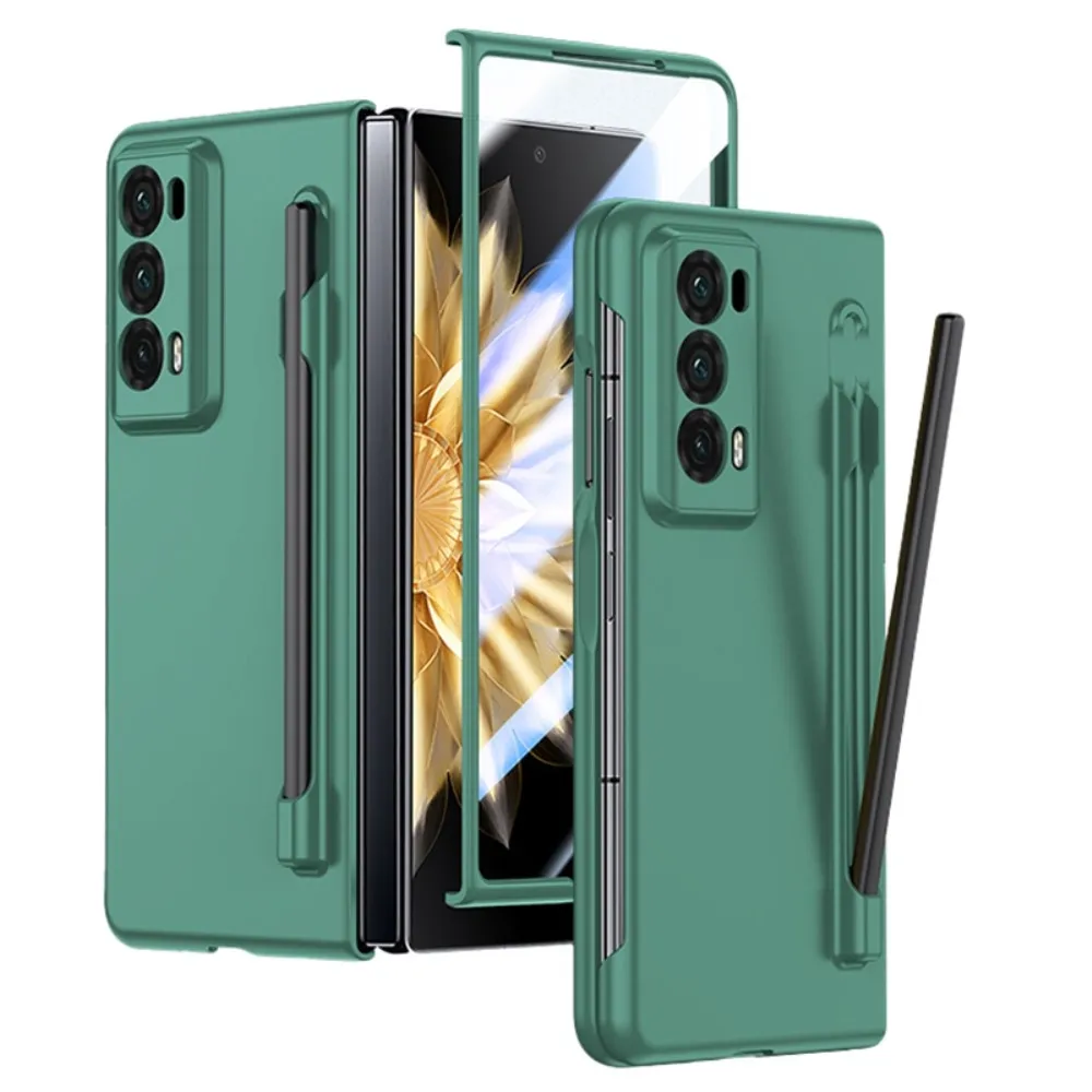 Sötétzöld műanyag borító tok képernyővédővel + tollal a Honor Magic V2-hez