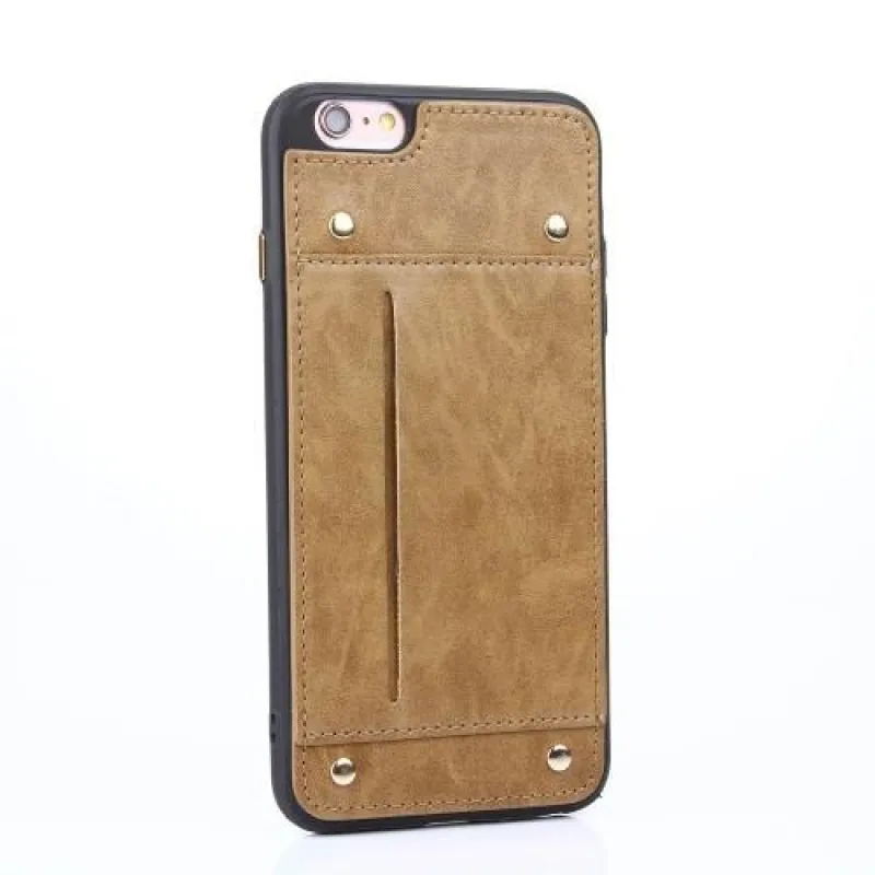 Műbőr és zselé kombinációja egy egyedi iPhone 6 és iPhone 6s tokban, khaki színben.