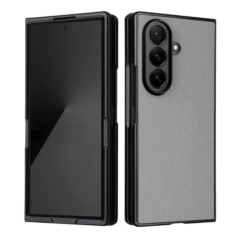 Szürke műanyag borítás Bőr bevonatú műbőrrel a mobiltelefonon Samsung Galaxy Z Fold7 5G 5G