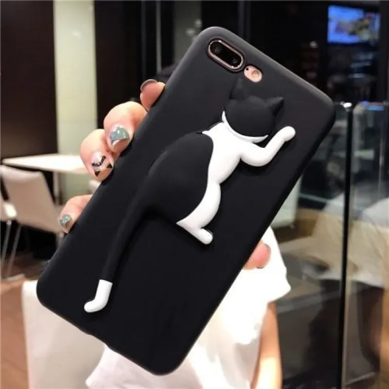 Macska 3D szilikon tok iPhone 6 Plus és iPhone 6s Plus készülékhez - fekete és fehér
