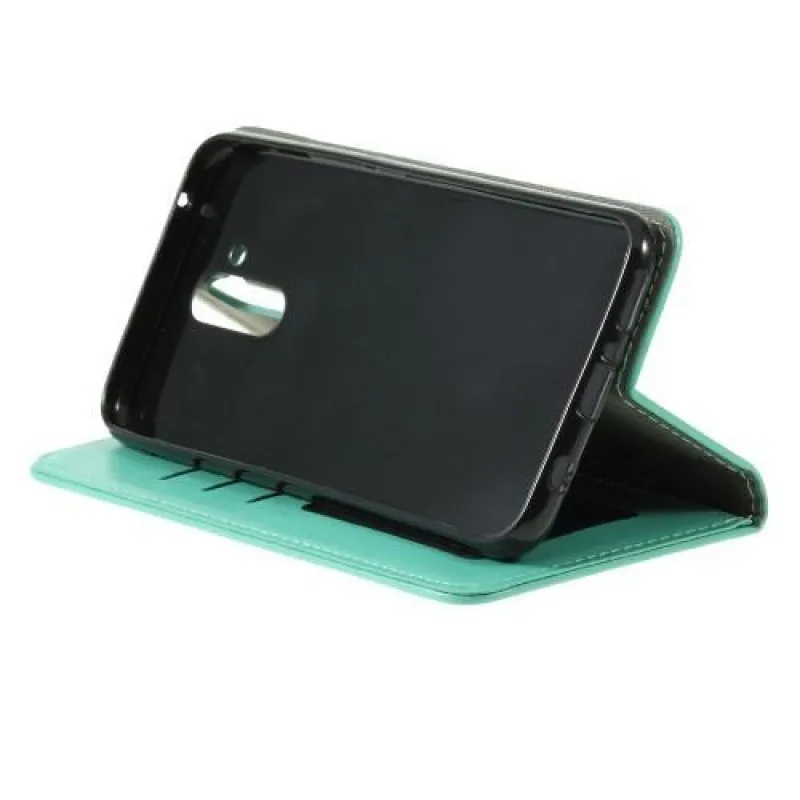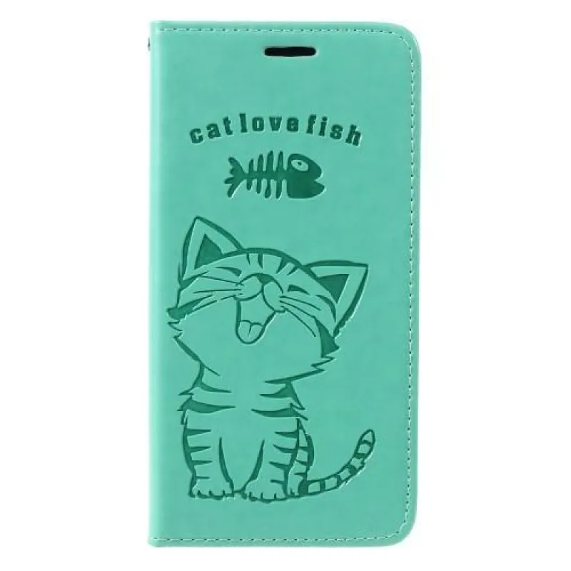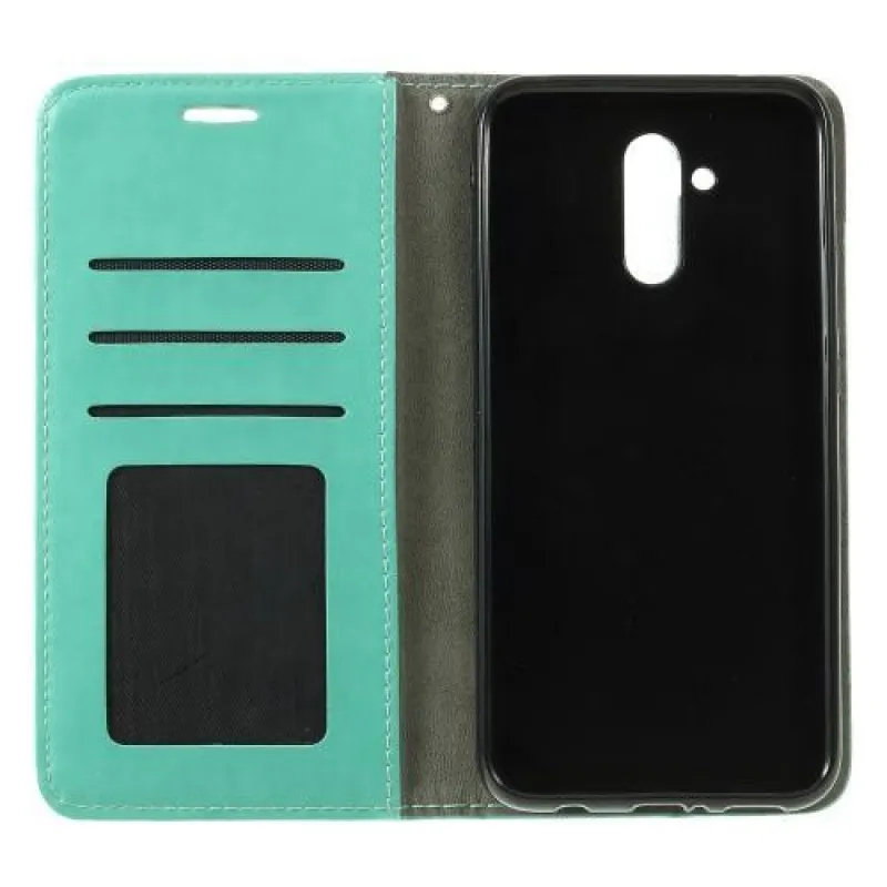 Macska PU bőr pénztárca tok Huawei Mate 20 Lite-hoz - cián színű