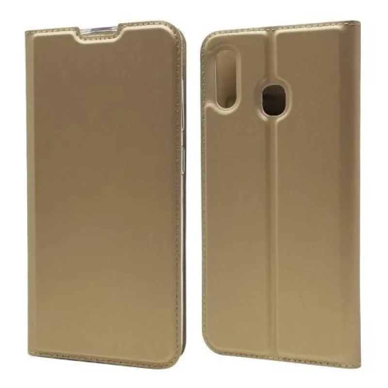 Mágneses PU bőr tok Samsung Galaxy A30 / A20 készülékhez - arany színű