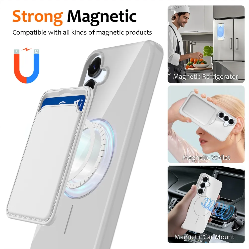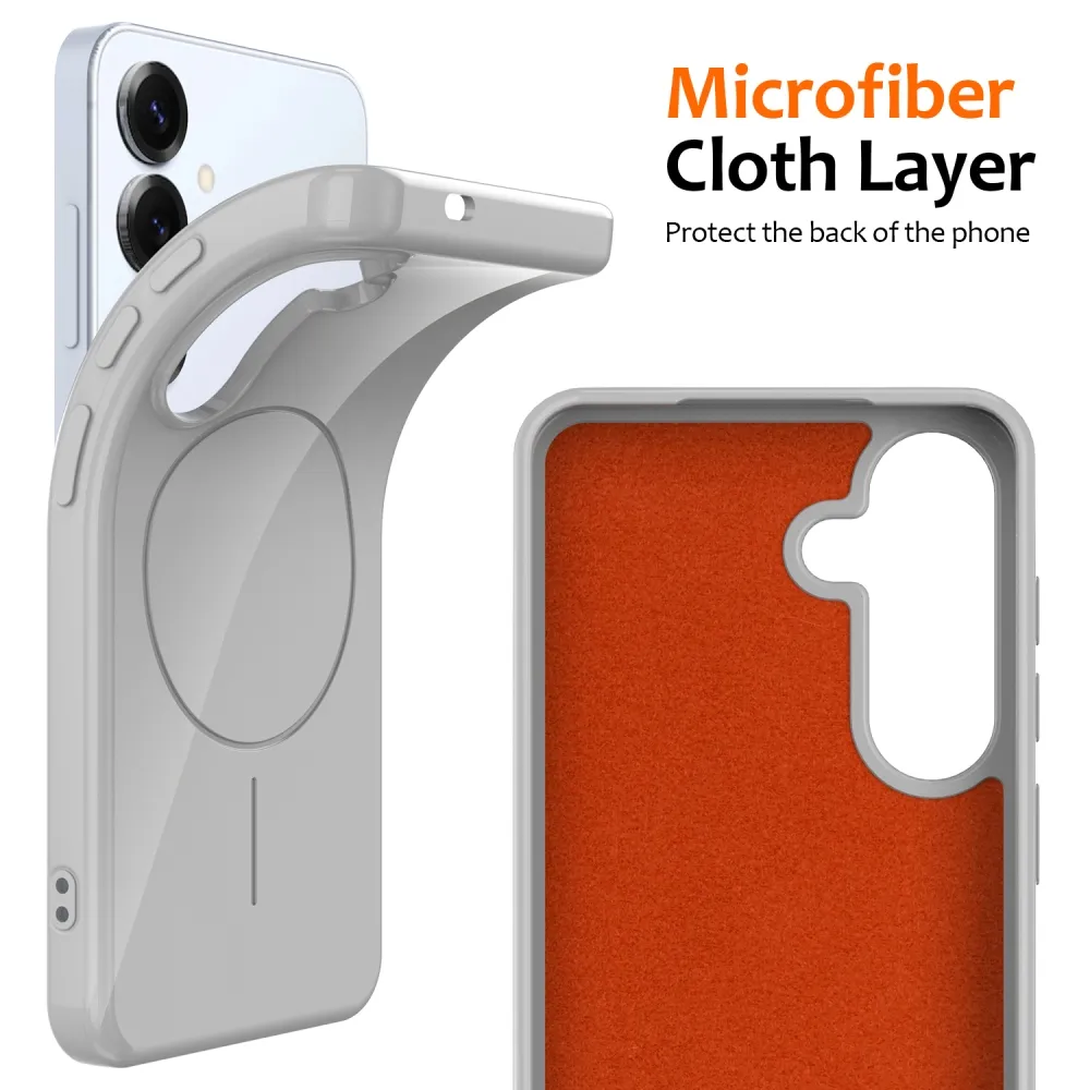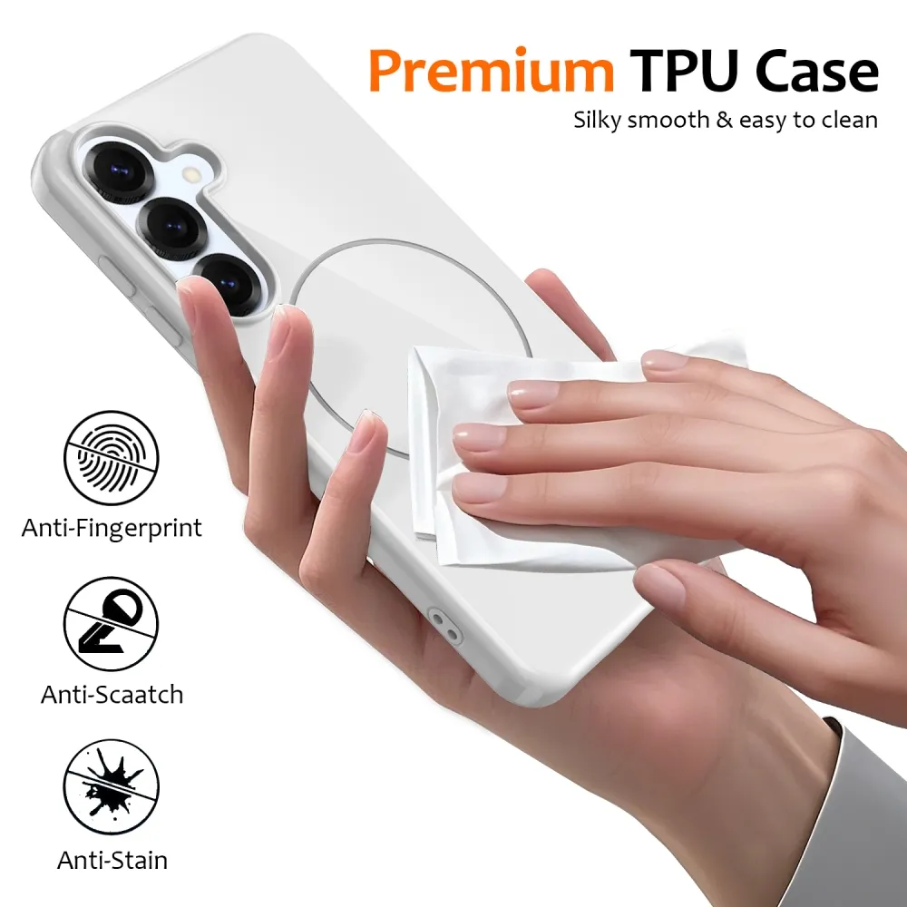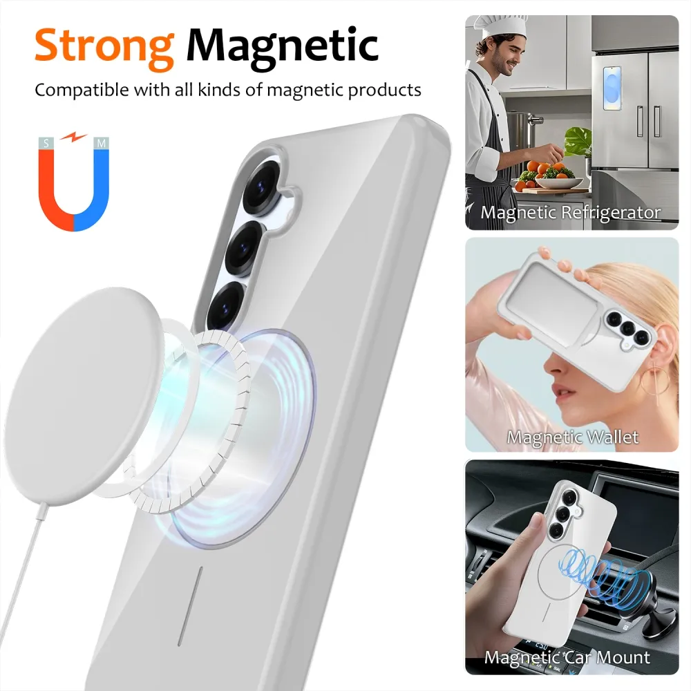✅【Kiváló minőségű anyag】 MagSafe-fel ellátott hordzselés tok Samsung Galaxy S25 FE-hez, fehér színben, prémium TPU anyagból készült. Puha, tartós és fényes felülettel rendelkezik, amely megakadályozza a vízfoltokat