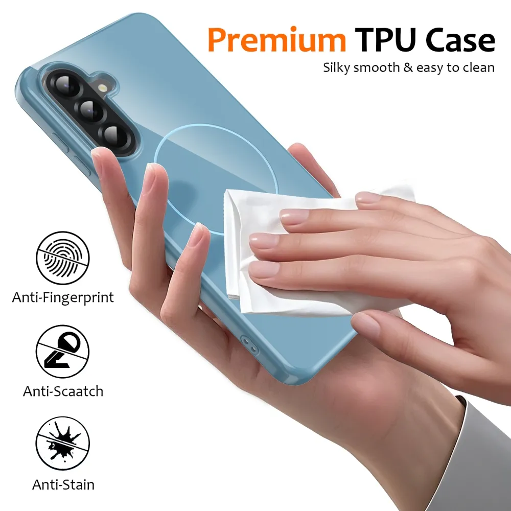 ✅【Kiváló minőségű anyag】 MagSafe-fel ellátott hordzselés tok Samsung Galaxy A17 4G/5G-hez, kék színben, prémium TPU anyagból készült. Puha, tartós és fényes felülettel rendelkezik, amely megakadályozza a vízfoltokat