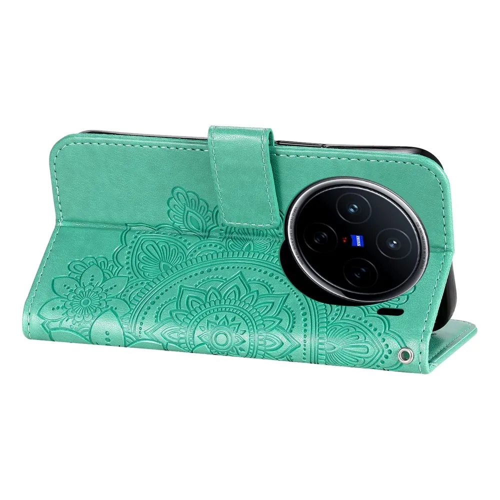 Kék-zöld Mandala pénztárca tok a Vivo X200 5G-hez