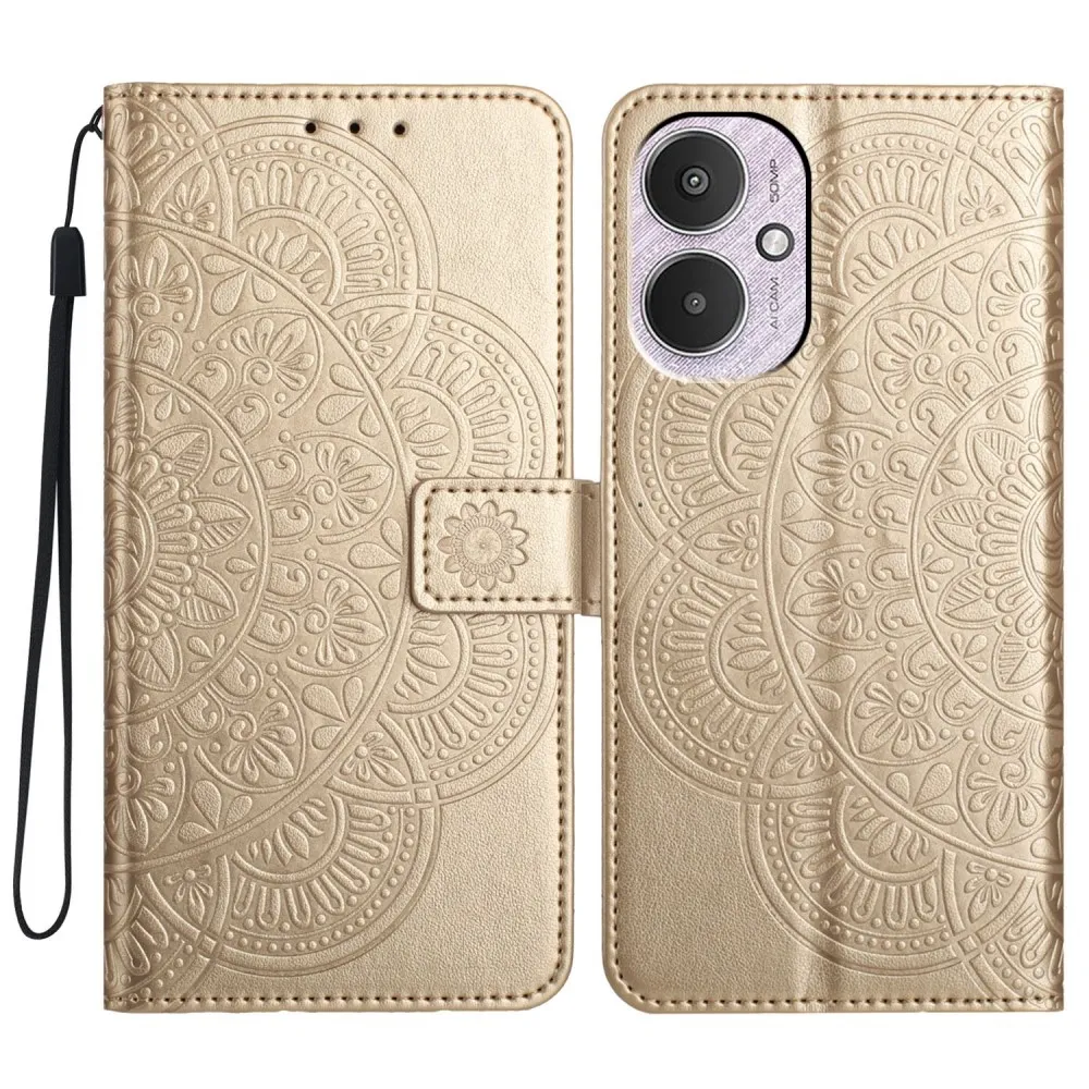 Arany Mandala pénztárca tok Xiaomi Redmi 13C 5G számára