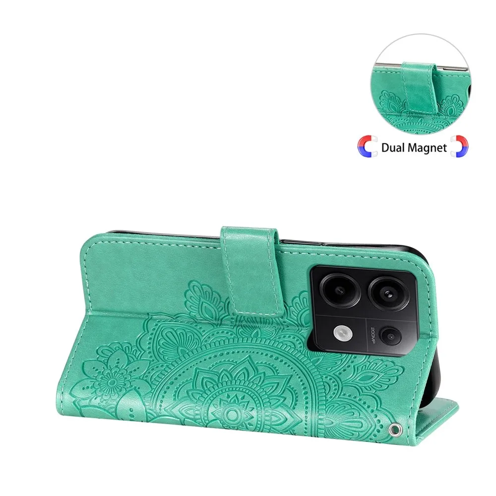 Kék-zöld Mandala pénztárca tok Xiaomi Redmi Note 13 Pro 5G/Poco X6 5G számára