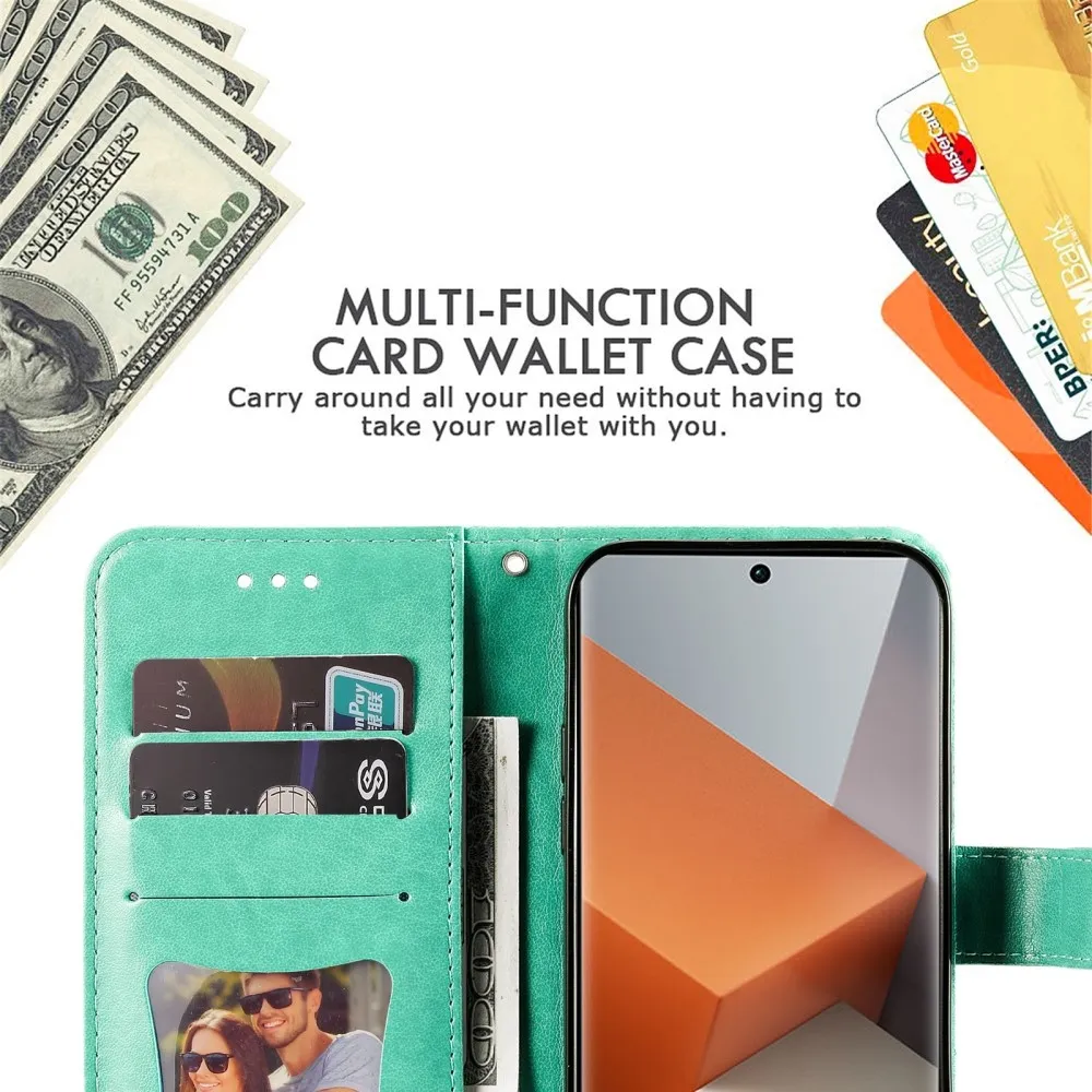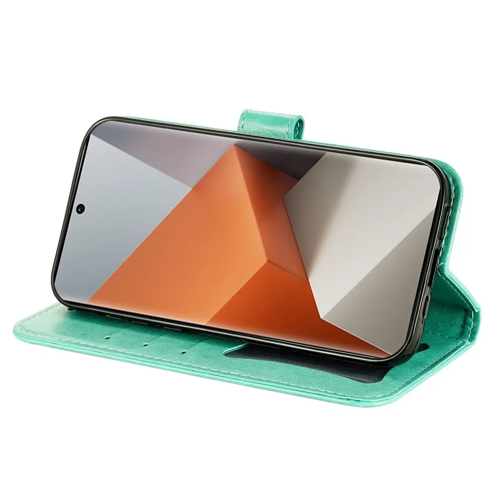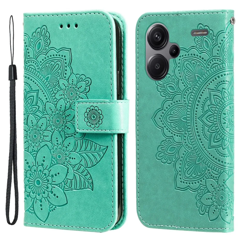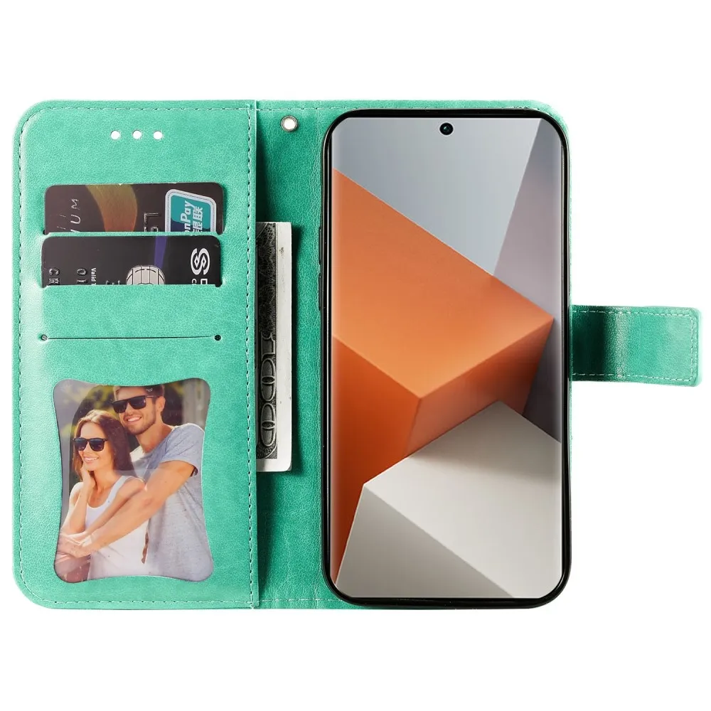 Kék-zöld Mandala pénztárca tok a Xiaomi Redmi Note 13 Pro+ 5G-hez