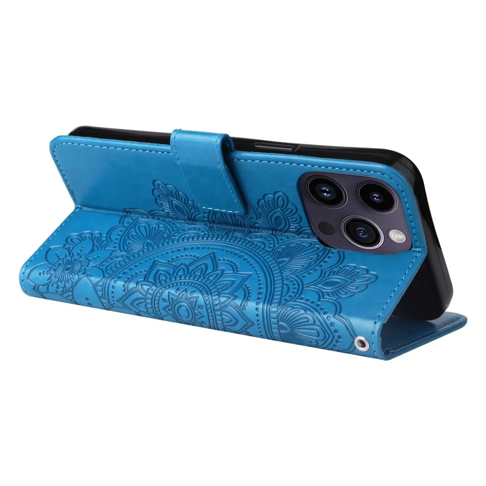 Kék mandala pénztárca tok iPhone 15 Pro készülékhez