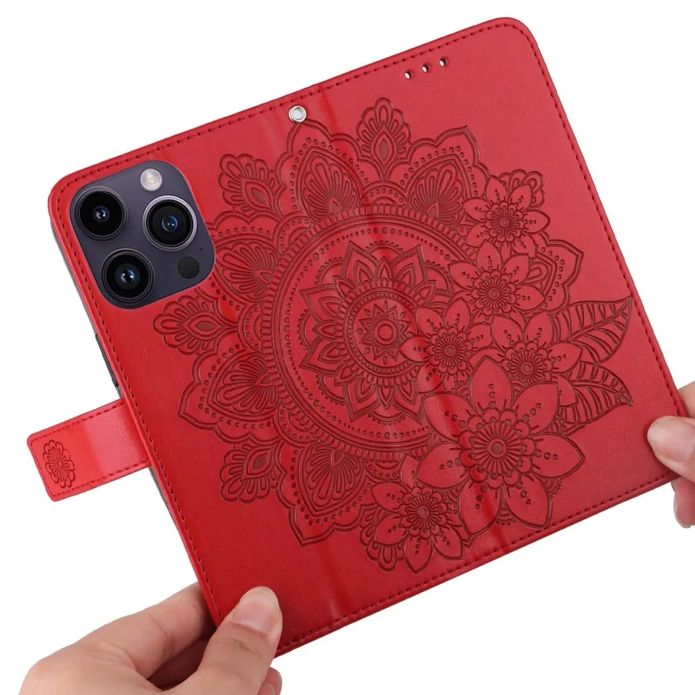 Piros mandala pénztárca tok iPhone 15 Pro készülékhez