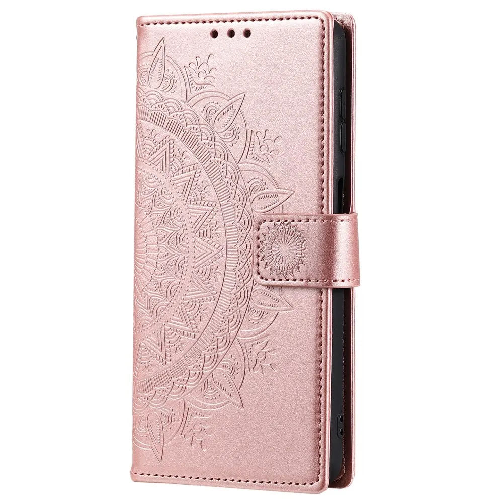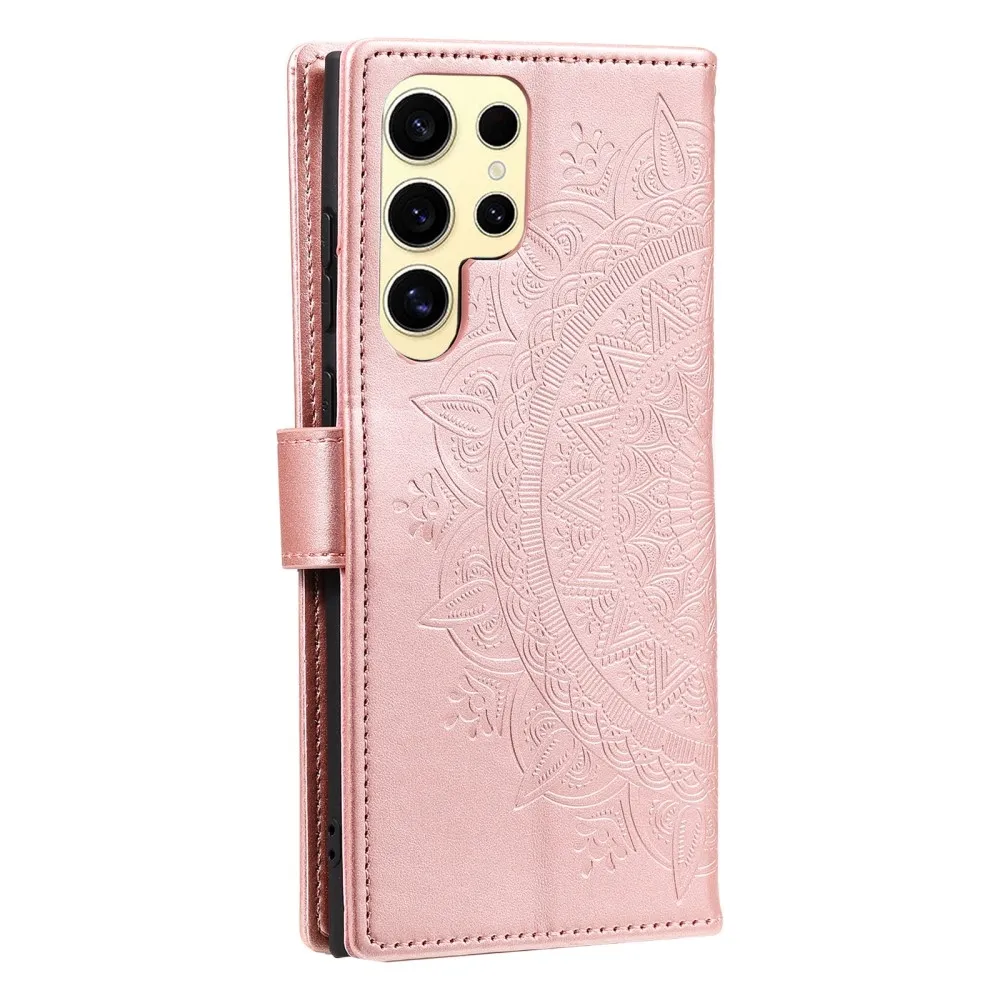 Rózsaszín és arany Mandala pénztárca tok Samsung Galaxy S25 Ultra számára