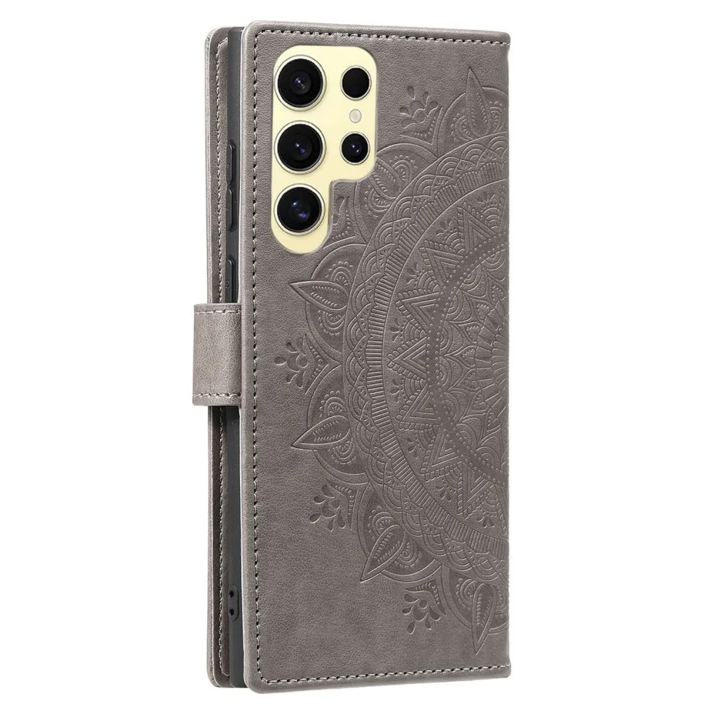 Szürke pénztárca tok Mandala a Samsung Galaxy S25 Ultra számára