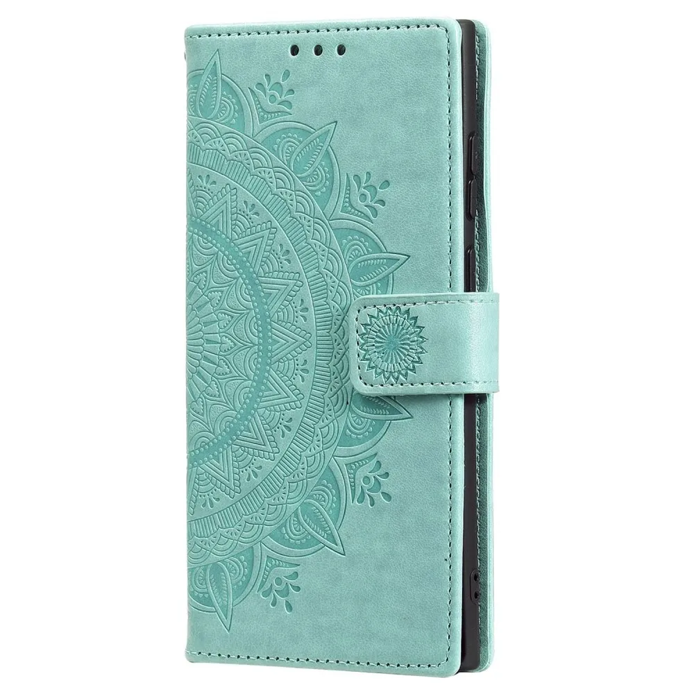 Kék-zöld Mandala pénztárca tok Samsung Galaxy S25 Ultra készülékhez