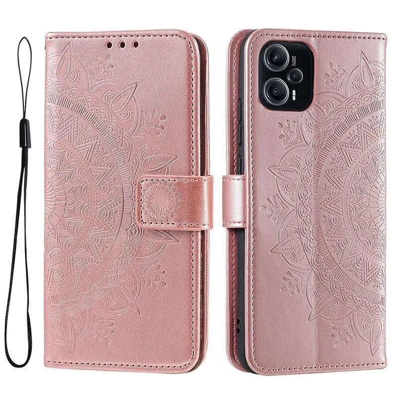 Rózsaszín és arany Mandala pénztárca tok a Xiaomi Poco F5-hez