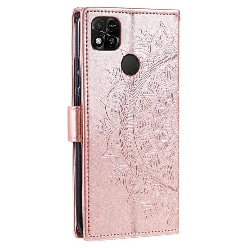 Rózsaszín és arany Mandala pénztárca tok Xiaomi Redmi 10A számára