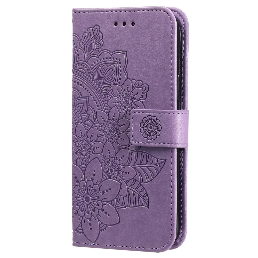 A virágmintás Mandala könyvborító minden oldalról körülveszi a mobiltelefonodat, átfogó védelmet nyújtva neki.