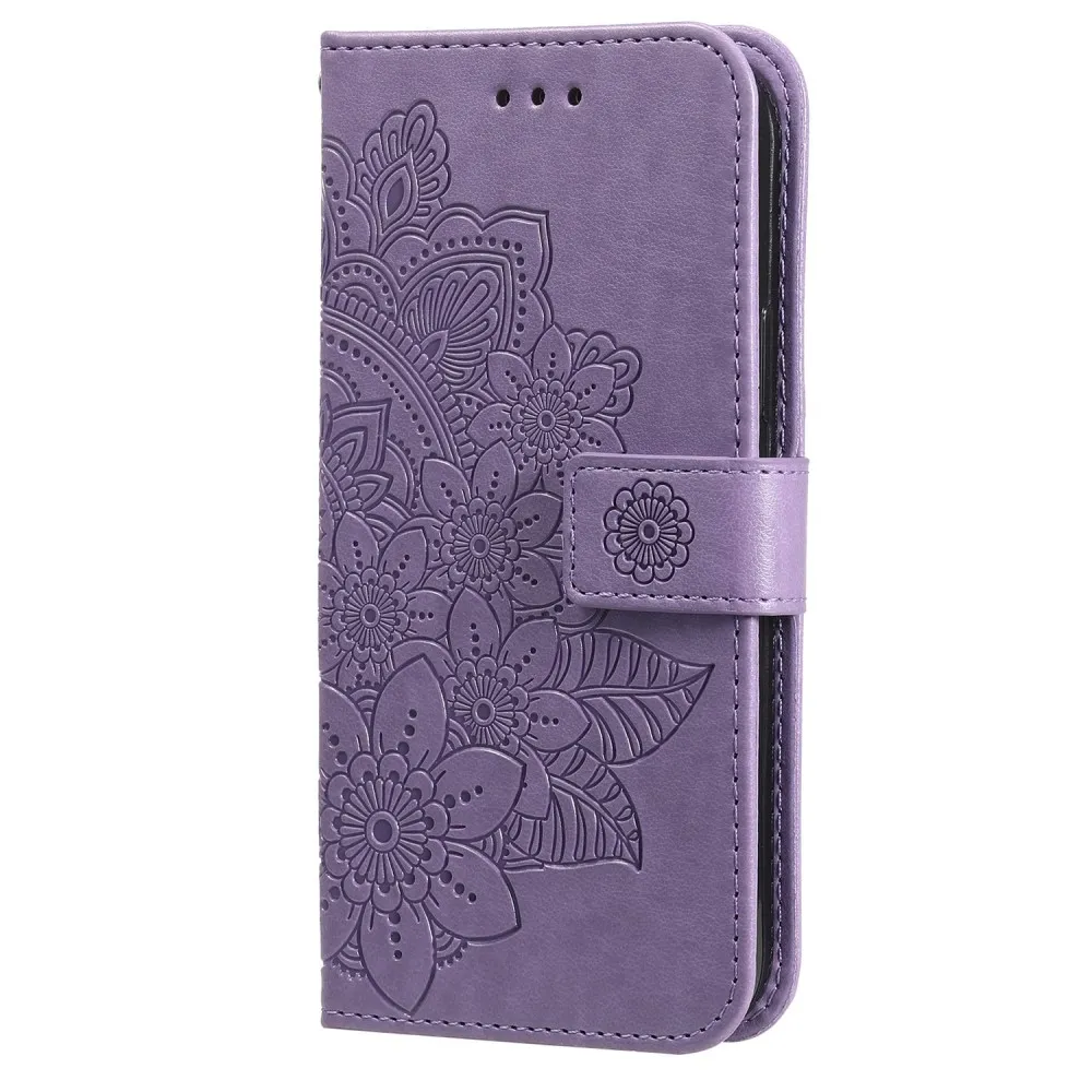 A virágmintás Mandala könyvborító minden oldalról körülveszi a mobiltelefonodat, átfogó védelmet nyújtva neki.