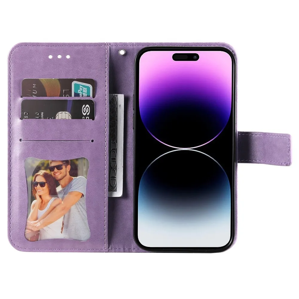 Lila Mandala pénztárca tok iPhone 15 Pro készülékhez