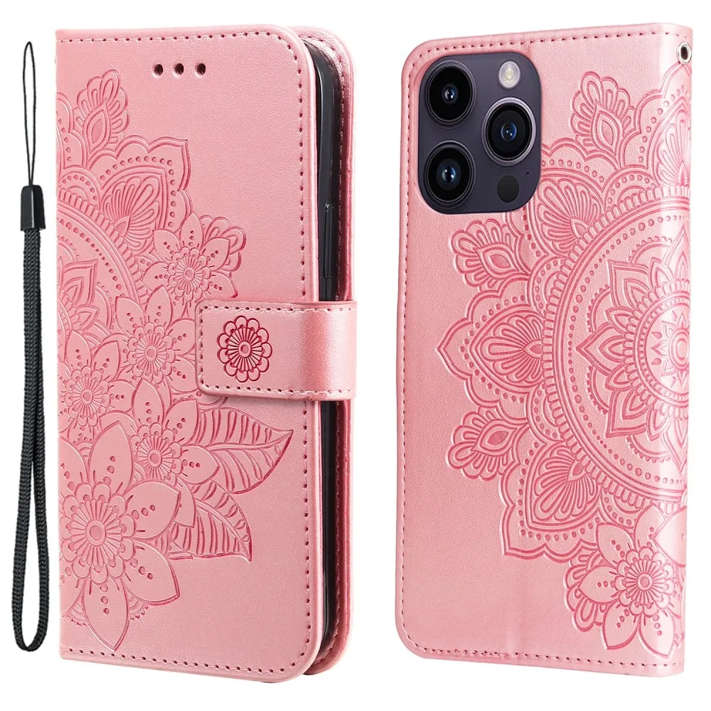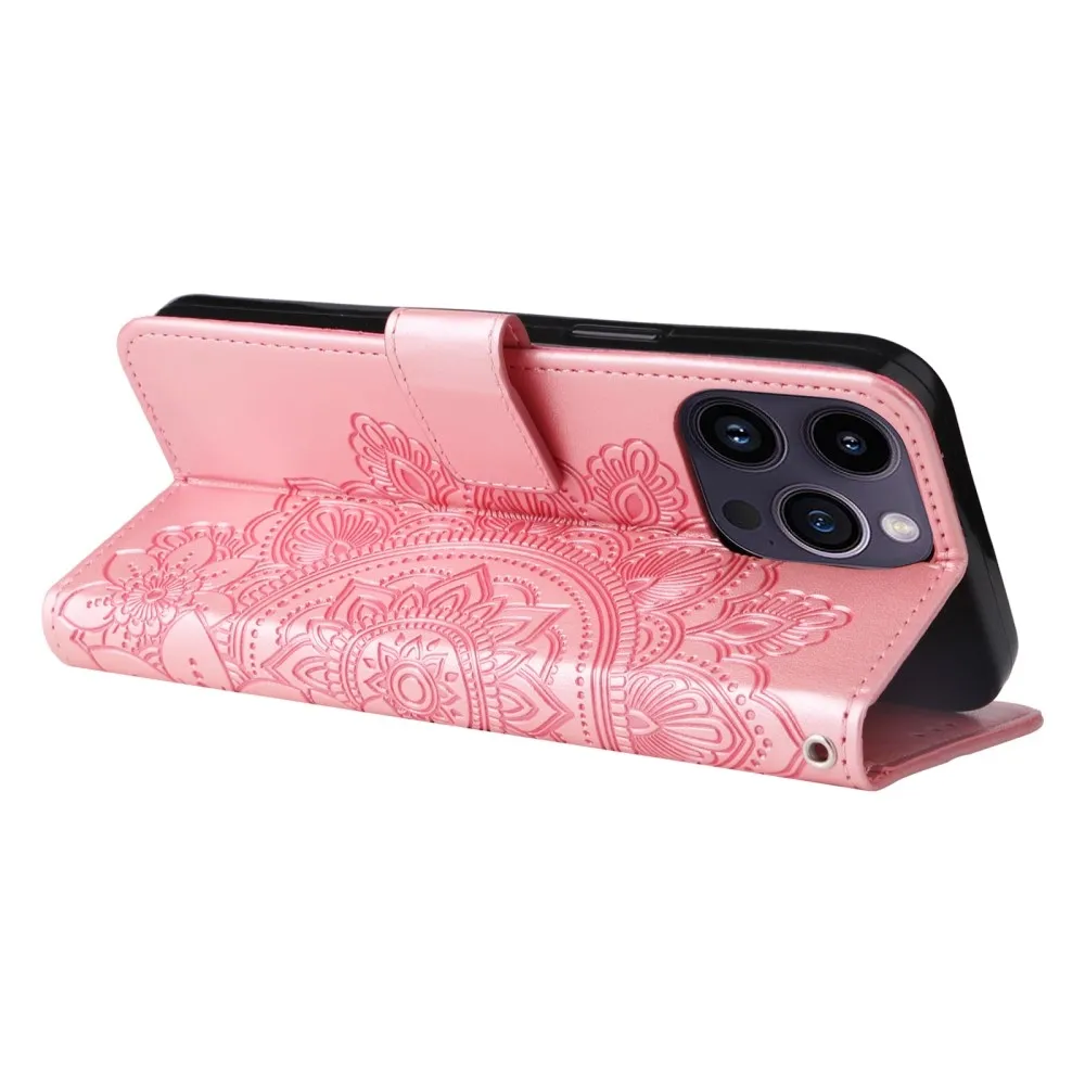 Rózsaszín mandala pénztárca tok iPhone 15 Pro készülékhez