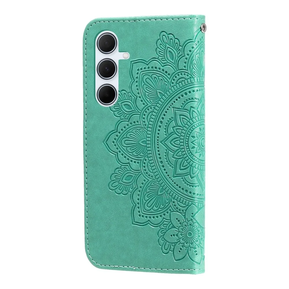 Kék-zöld Mandala pénztárca tok a Samsung Galaxy A36 5G-hez