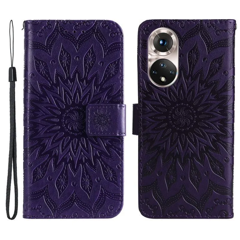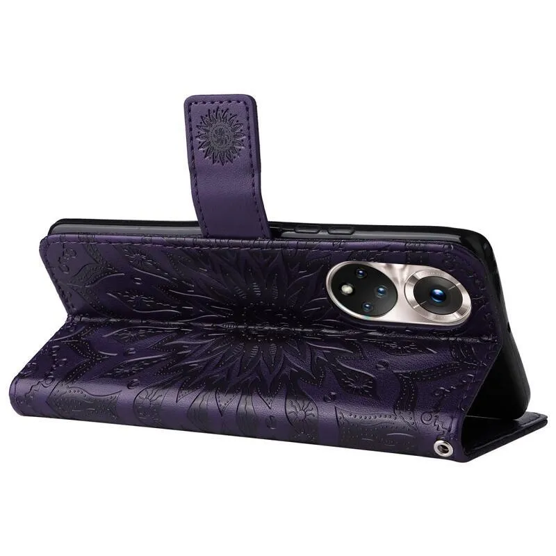 Mandala PU bőr pénztárca tok a Huawei Nova 9/Honor 50 számára - lila