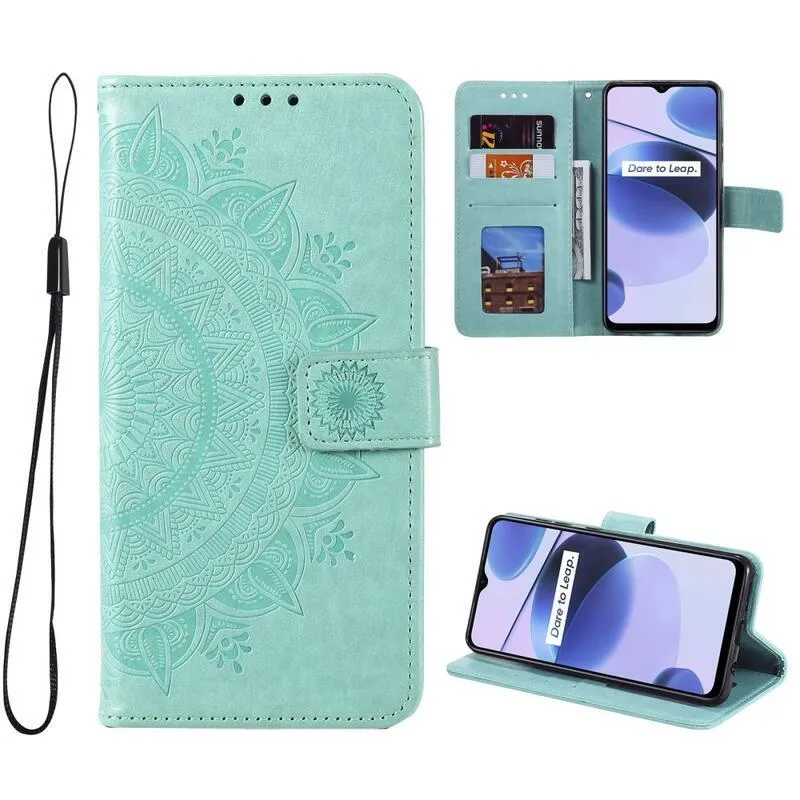 Mandala PU bőr pénztárca tok mobilhoz Realme C35 - zöld