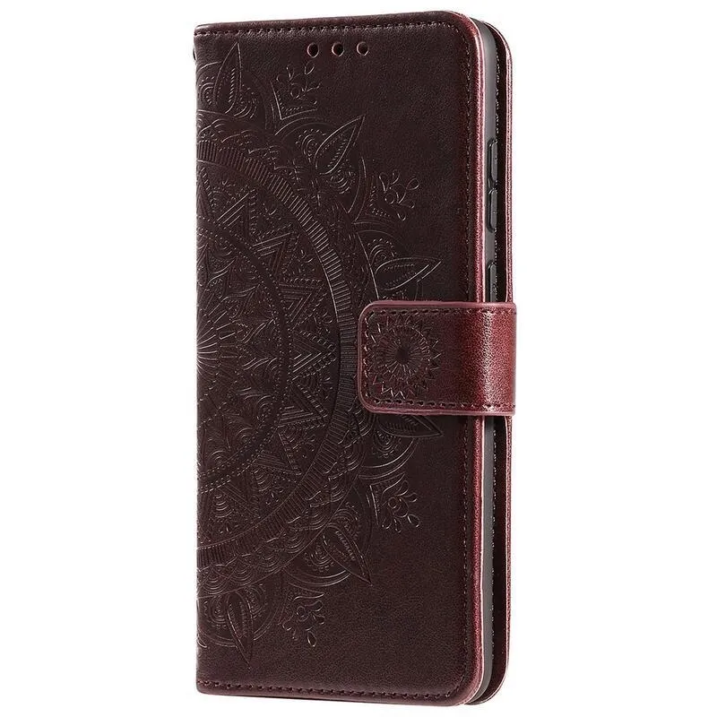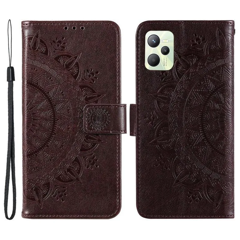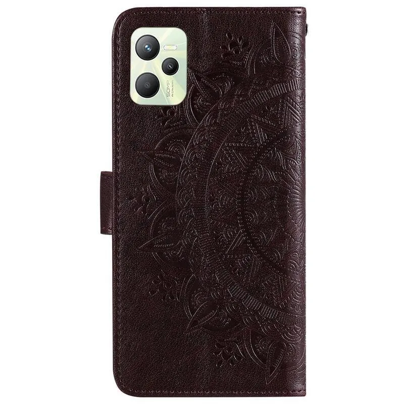 Mandala PU bőr pénztárca tok mobiltelefonhoz Realme C35 - barna
