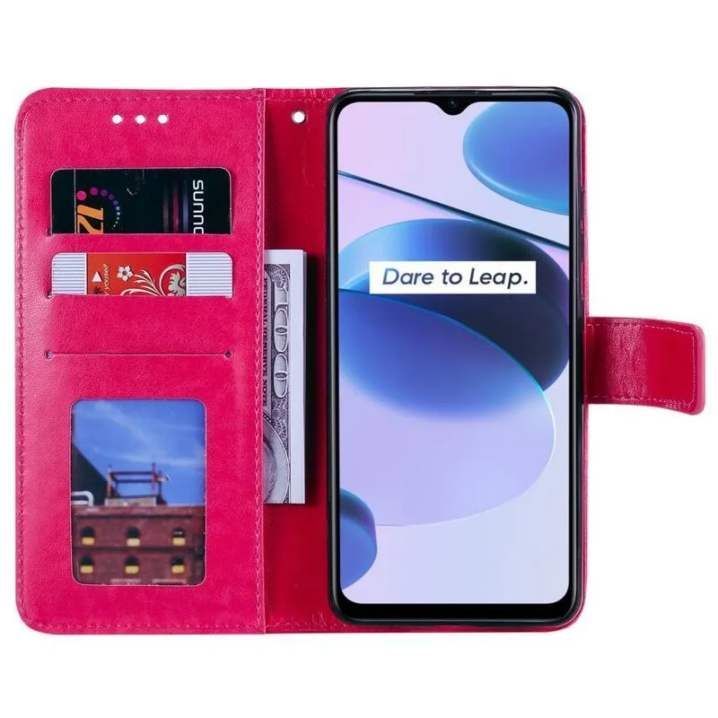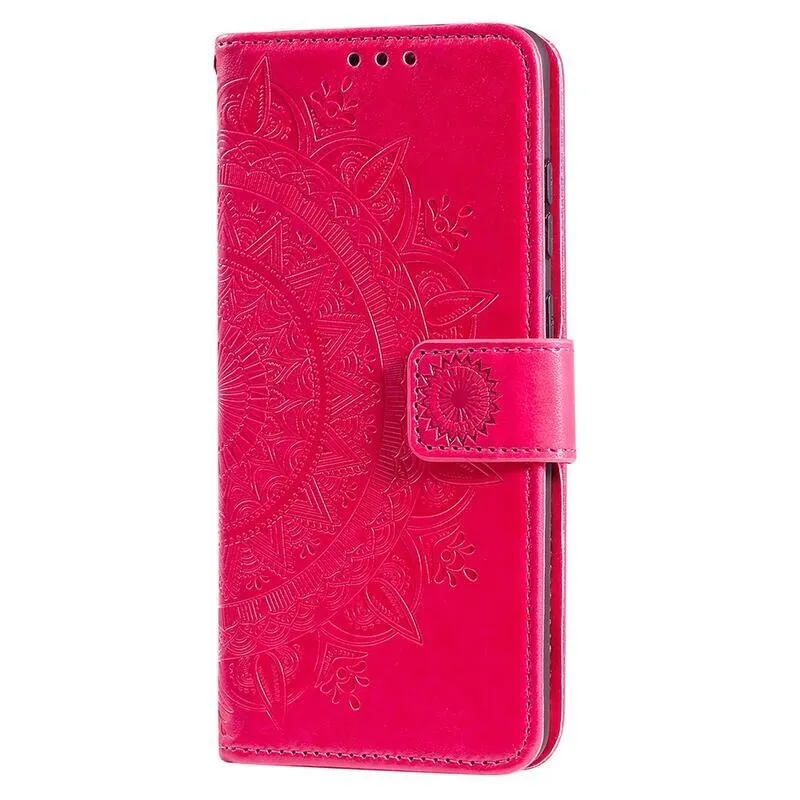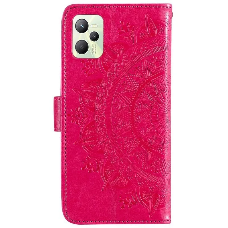 Mandala PU bőr pénztárca tok mobiltelefonhoz Realme C35 - piros