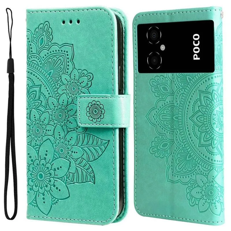 Mandala PU bőr pénztárca tok Xiaomi Poco M4 5G - zöld