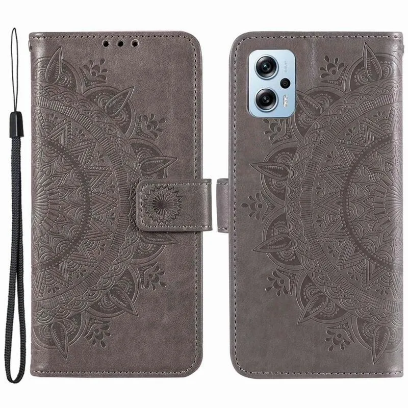 Mandala PU bőr pénztárca tok Xiaomi Poco X4 GT-hez - szürke