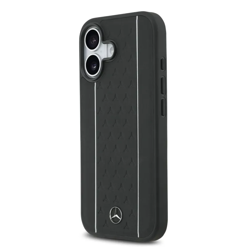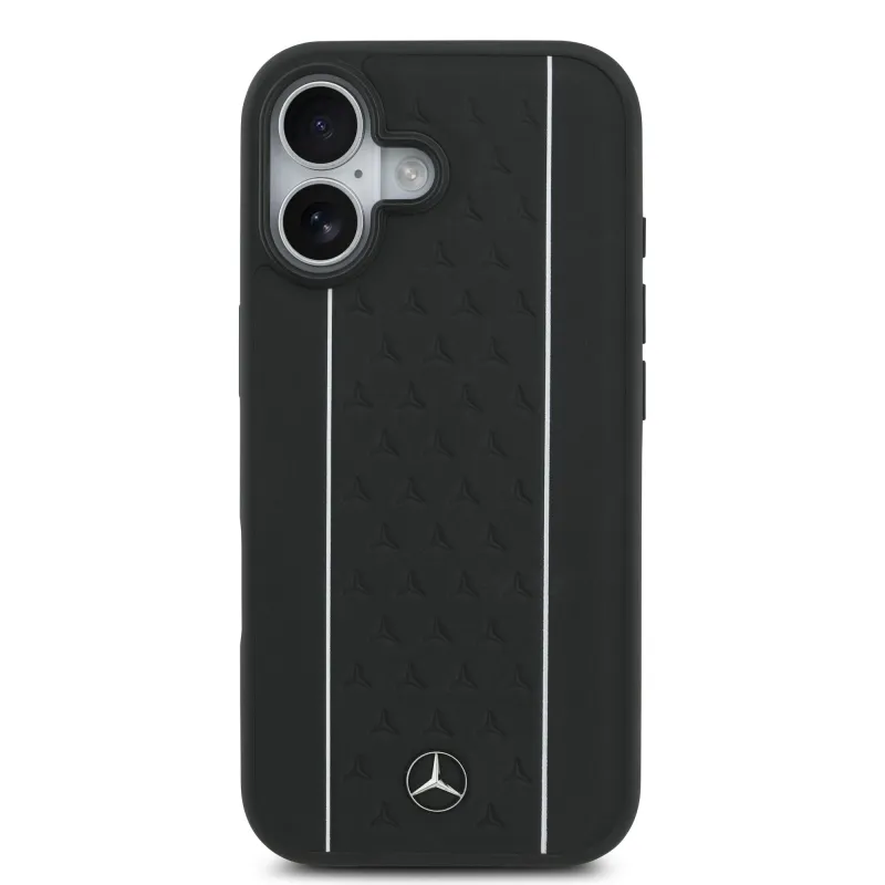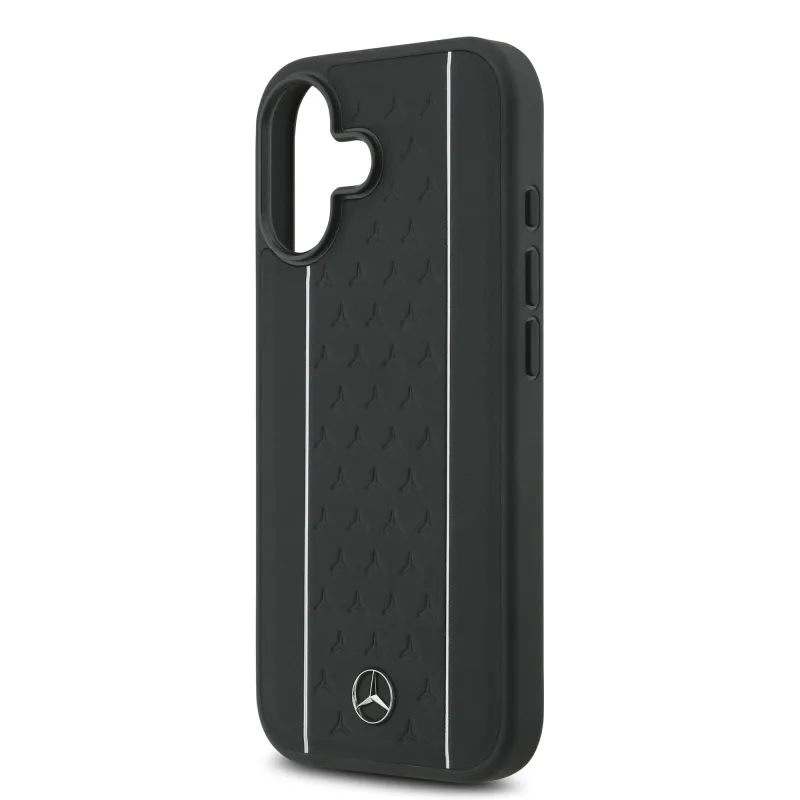 Mercedes Bőr csillagmintás és csíkos MagSafe hátlap iPhone 17 fekete/fehér színű iPhone 17-hez