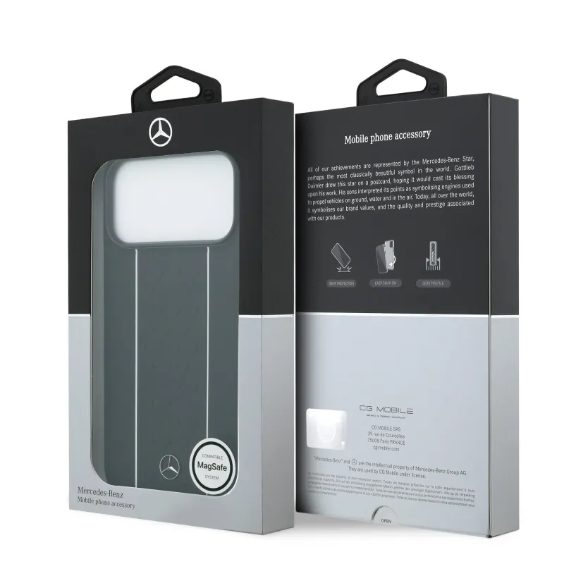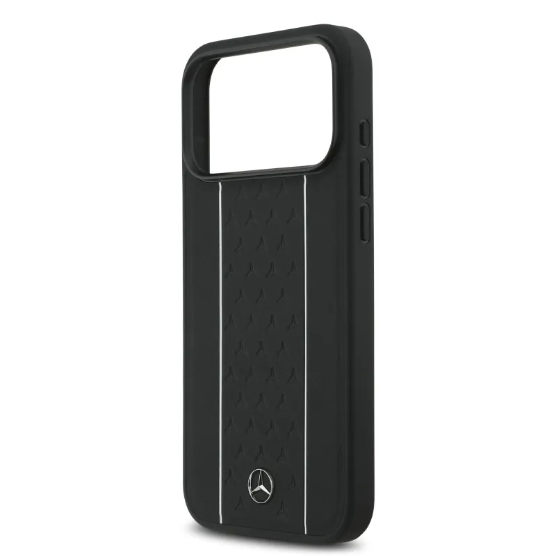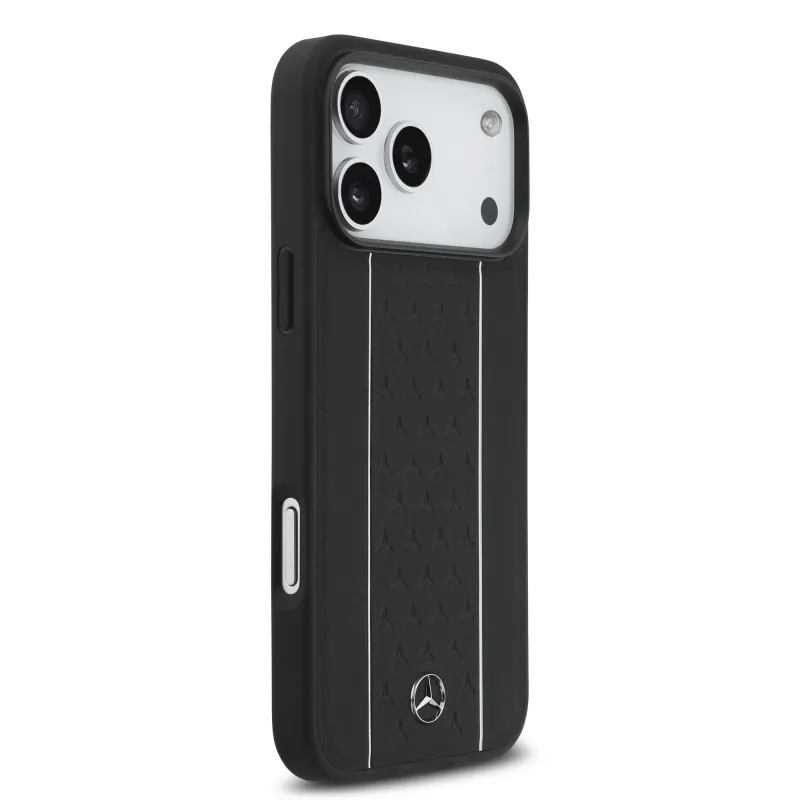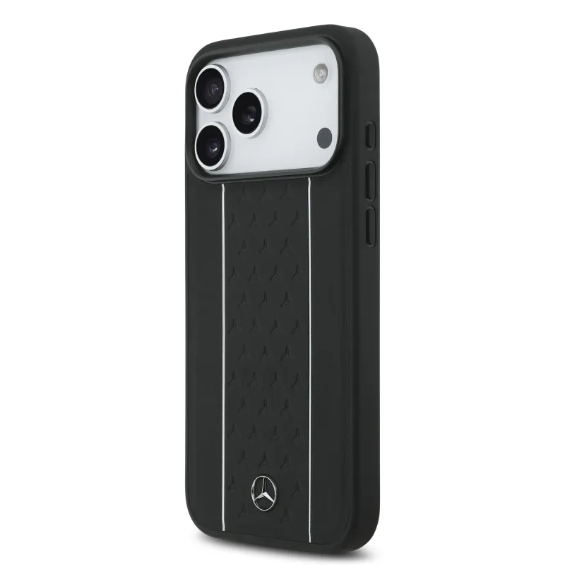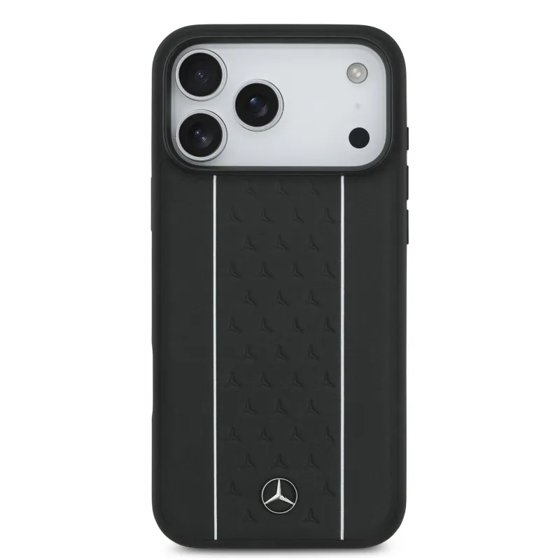 Mercedes Bőr csillagmintás és csíkos MagSafe hátlap iPhone 17 Pro Max fekete/fehér színű bőrborításhoz