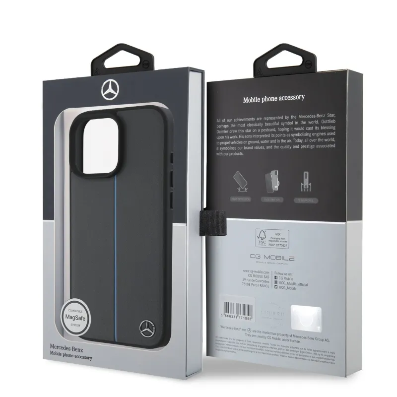Mercedes bőr kék csíkos MagSafe hátlap iPhone 16 Pro antracitszürke színű iPhone 16 Pro számára