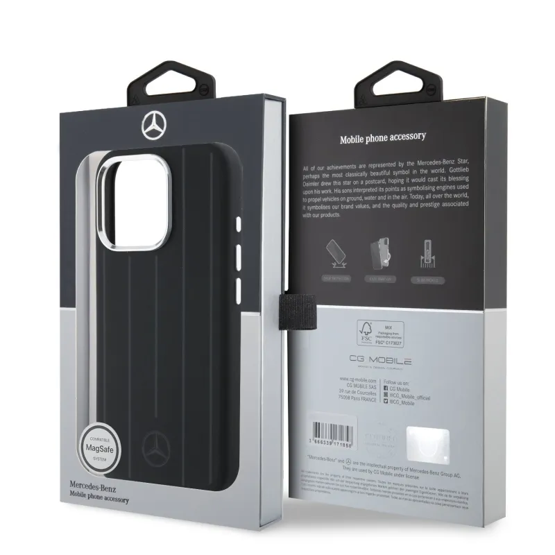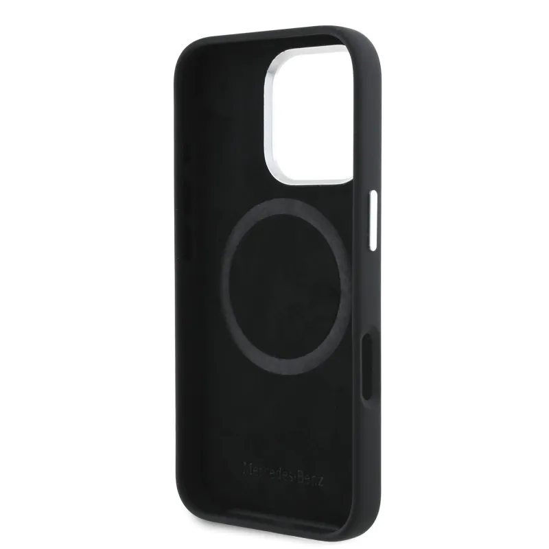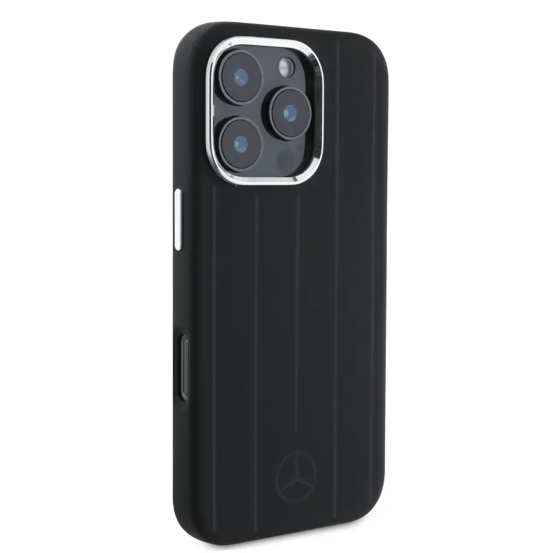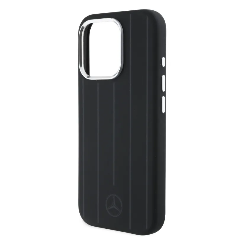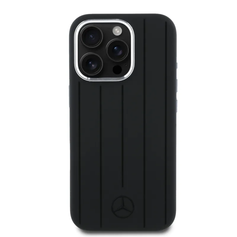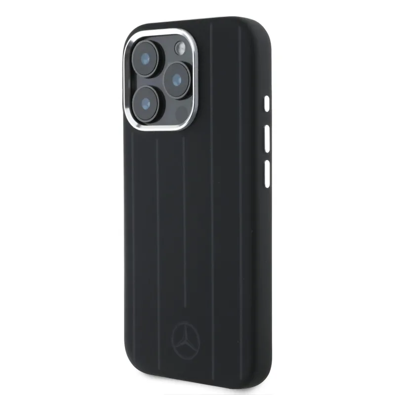 Mercedes Liquid szilikon csíkos mintás MagSafe hátlap iPhone 16 Pro Fekete